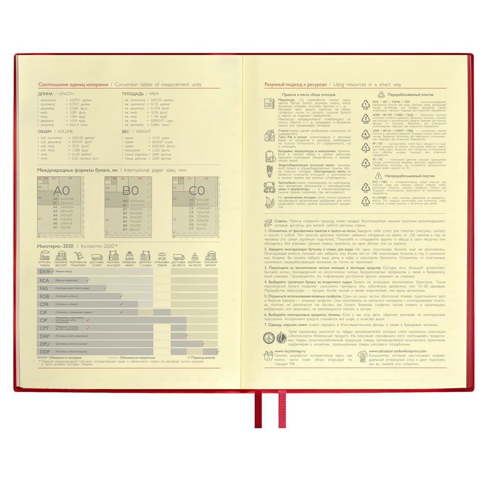 Грамотное планирование времени и рациональное распределение усилий являются залогом успеха в любом деле. А если речь о бизнесе, то к этому списку добавляется внимание к деталям. Ежедневник Merida, датированный, красный , (артикул 01-18291.50) — практичный аксессуар, превращающийся в промопродукцию с помощью шелкографии, печати или тиснения, а это повышает самым узнаваемость бренда. На изделии хватит места для корпоративной символики, которая постоянно на виду.
