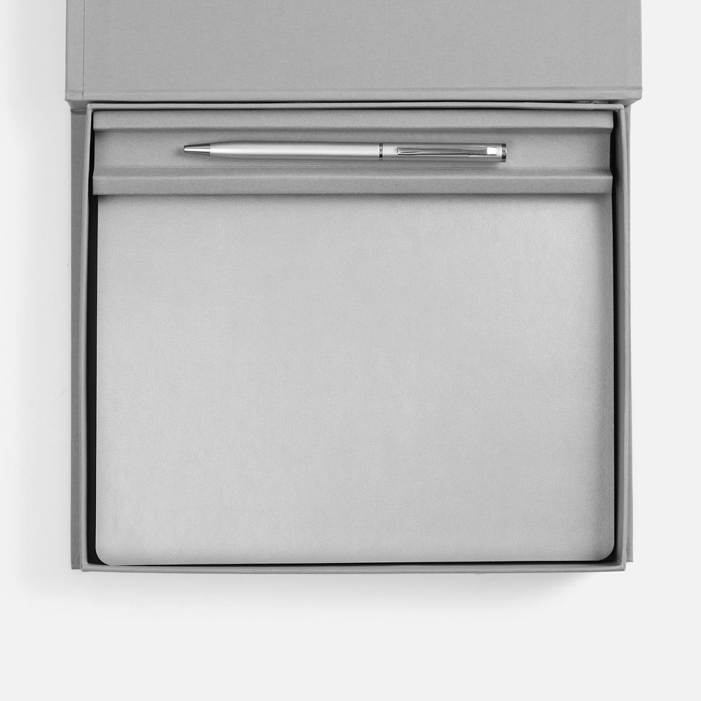 Грамотное планирование времени и рациональное распределение усилий являются залогом успеха в любом деле. А в бизнесе к этому списку добавляется внимание к деталям. Набор Nebraska Flex, серебристый (артикул 01-20128.10) — отличный бизнес-подарок для делового человека, который можно еще и превратить в промопродукцию с помощью шелкографии, печати или тиснения. За счет этого удастся сделать бренд более узнаваемым. На таких канцелярских принадлежностях хватит места для корпоративной символики, которая постоянно на виду.