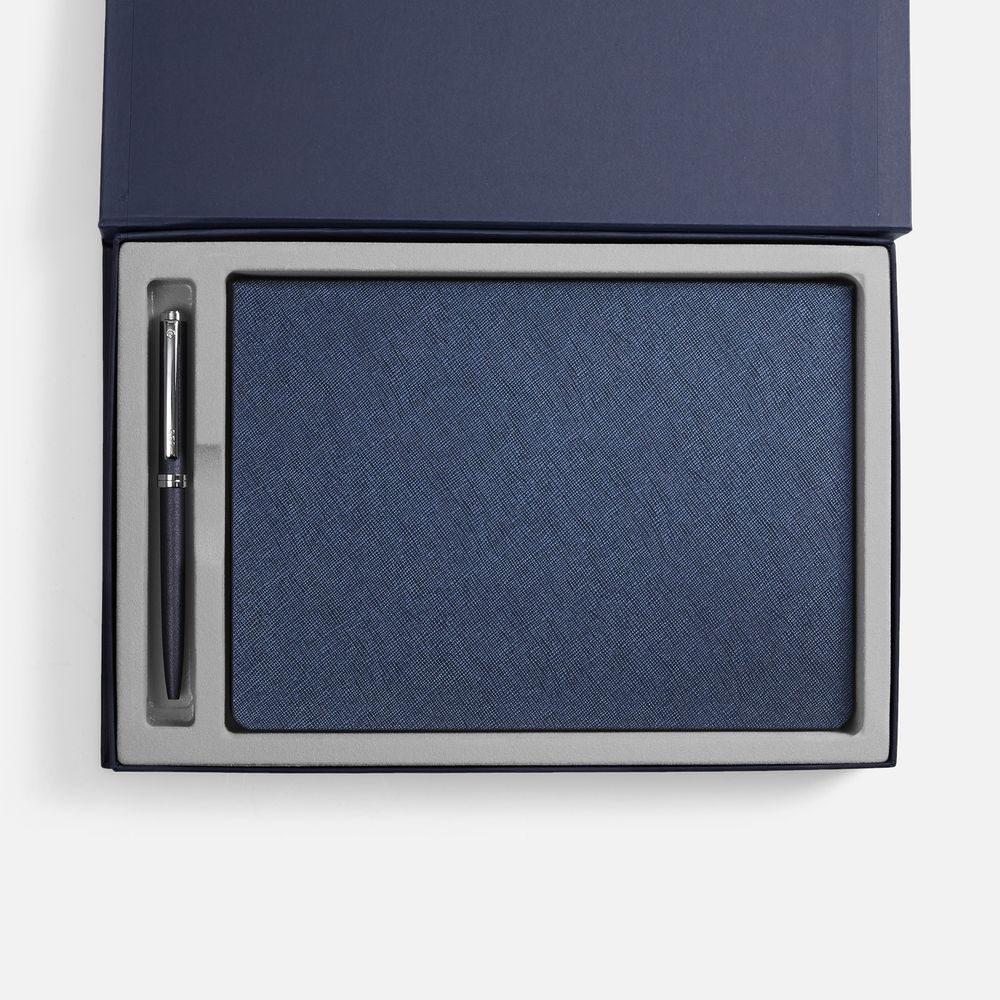 Грамотное планирование времени и рациональное распределение усилий являются залогом успеха в любом деле. А в бизнесе к этому списку добавляется внимание к деталям. Набор Saffian, синий (артикул 01-20183.40) — отличный бизнес-подарок для делового человека, который можно еще и превратить в промопродукцию с помощью шелкографии, печати или тиснения. За счет этого удастся сделать бренд более узнаваемым. На таких канцелярских принадлежностях хватит места для корпоративной символики, которая постоянно на виду.