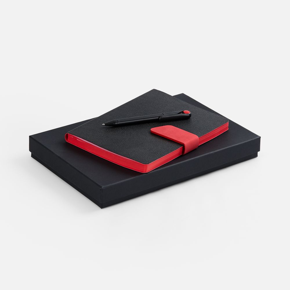 Грамотное планирование времени и рациональное распределение усилий являются залогом успеха в любом деле. А в бизнесе к этому списку добавляется внимание к деталям. Набор Boom, черный с красным (артикул 01-20780.35) — отличный бизнес-подарок для делового человека, который можно еще и превратить в промопродукцию с помощью шелкографии, печати или тиснения. За счет этого удастся сделать бренд более узнаваемым. На таких канцелярских принадлежностях хватит места для корпоративной символики, которая постоянно на виду.