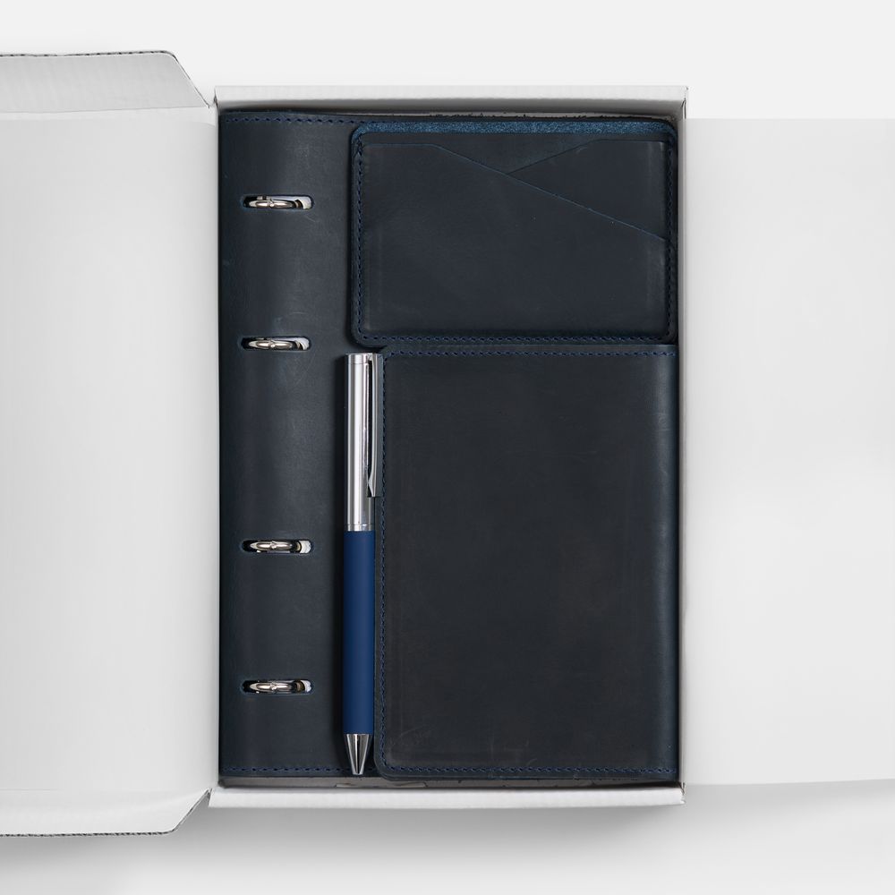Грамотное планирование времени и рациональное распределение усилий являются залогом успеха в любом деле. А в бизнесе к этому списку добавляется внимание к деталям. Набор inStream Maxi, синий (артикул 01-21669.40) — отличный бизнес-подарок для делового человека, который можно еще и превратить в промопродукцию с помощью шелкографии, печати или тиснения. За счет этого удастся сделать бренд более узнаваемым. На таких канцелярских принадлежностях хватит места для корпоративной символики, которая постоянно на виду.