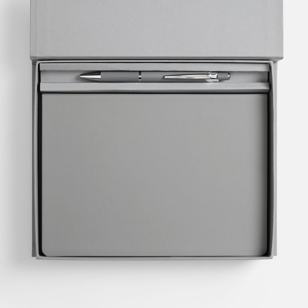 Грамотное планирование времени и рациональное распределение усилий являются залогом успеха в любом деле. А в бизнесе к этому списку добавляется внимание к деталям. Набор Shall Duo, серый (артикул 01-23333.10) — отличный бизнес-подарок для делового человека, который можно еще и превратить в промопродукцию с помощью шелкографии, печати или тиснения. За счет этого удастся сделать бренд более узнаваемым. На таких канцелярских принадлежностях хватит места для корпоративной символики, которая постоянно на виду.