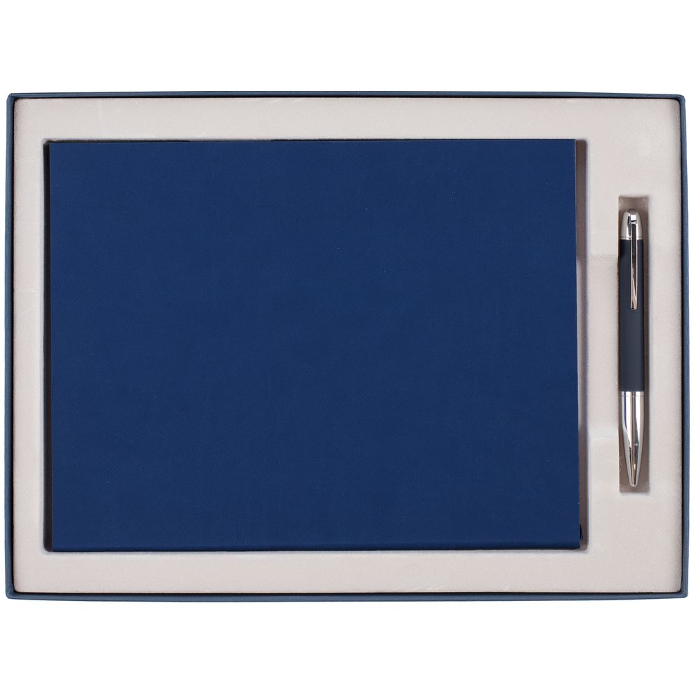 Коробка Roomy с ложементом под ежедневник А4 и ручку, синяя (артикул 01-18286.40) — не только надежный вид защиты, но и универсальный инструмент рекламы. Нанесите на поверхность эмблему, тематическую надпись, пожелание и любую другую информацию, которая ассоциируется с вашей компанией. Гарантирован мощный маркетинговый эффект: от повышения узнаваемости бренда до расширения целевой аудитории. На такой упаковке хорошо держатся любые изображения, ее можно повторно использовать, что увеличивает практическую ценность презента.