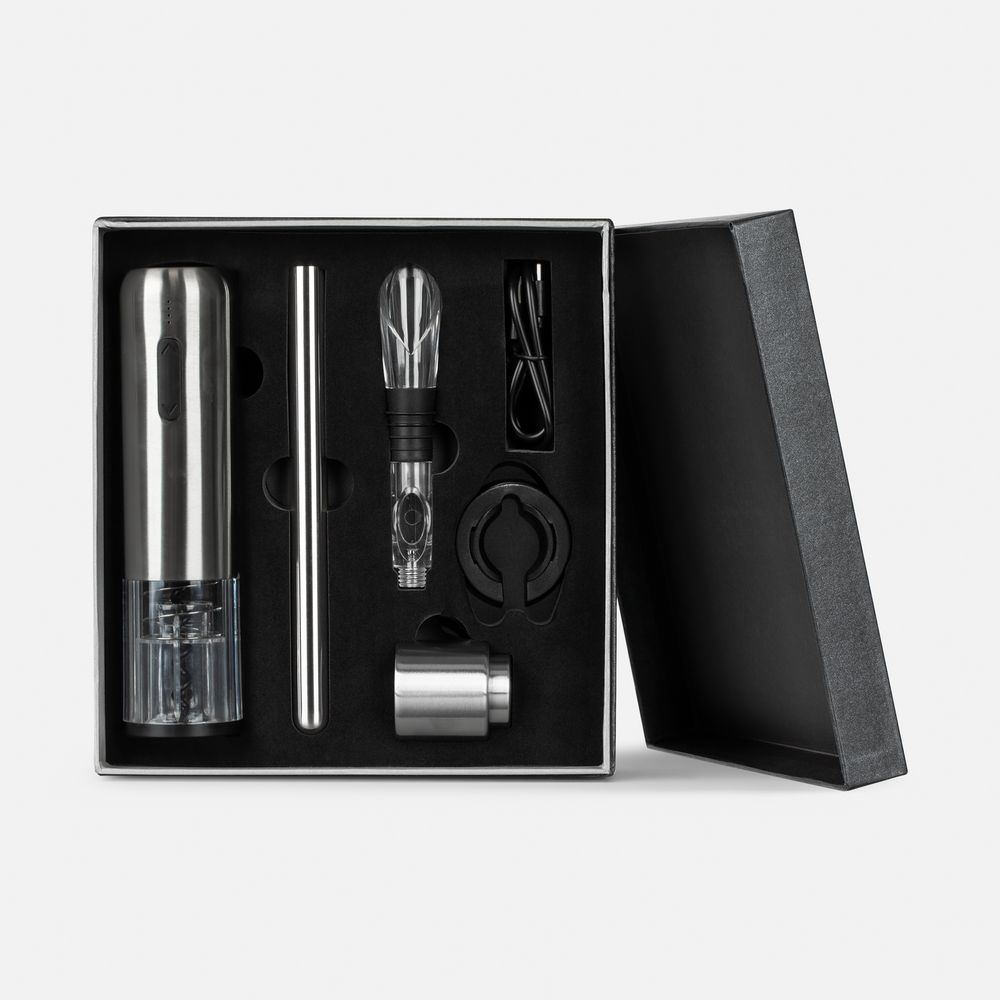 В работе с VIP-клиентами и партнерами ставка делается на индивидуальный подход и эксклюзивное обслуживание. Такими же должны быть и брендированные презенты, напоминающие о вашей компании. Винный набор Veritas, черный с серебристым (артикул 01-20429.10) и другие позиции каталога помогут удивить получателей и продемонстрировать внимание к их увлечениям и предпочтениям. Мы нанесем любую символику и превратим в инструмент для продвижения бизнеса с отличным качеством.